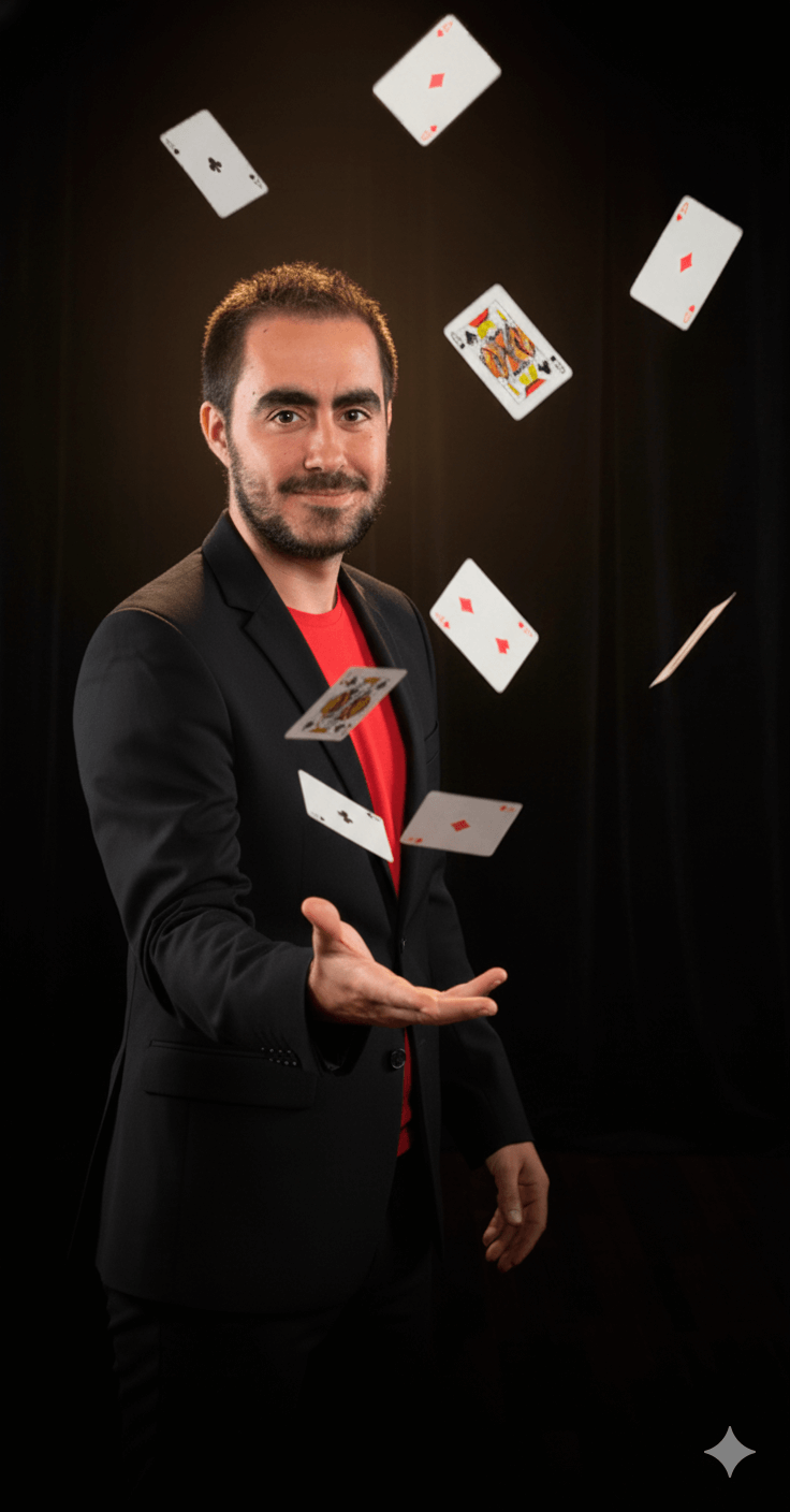 Magia profesional para hoteles, colegios, empresas, fiestas y eventos familiares. Adaptada al público, al espacio y a la emoción que quieras despertar.